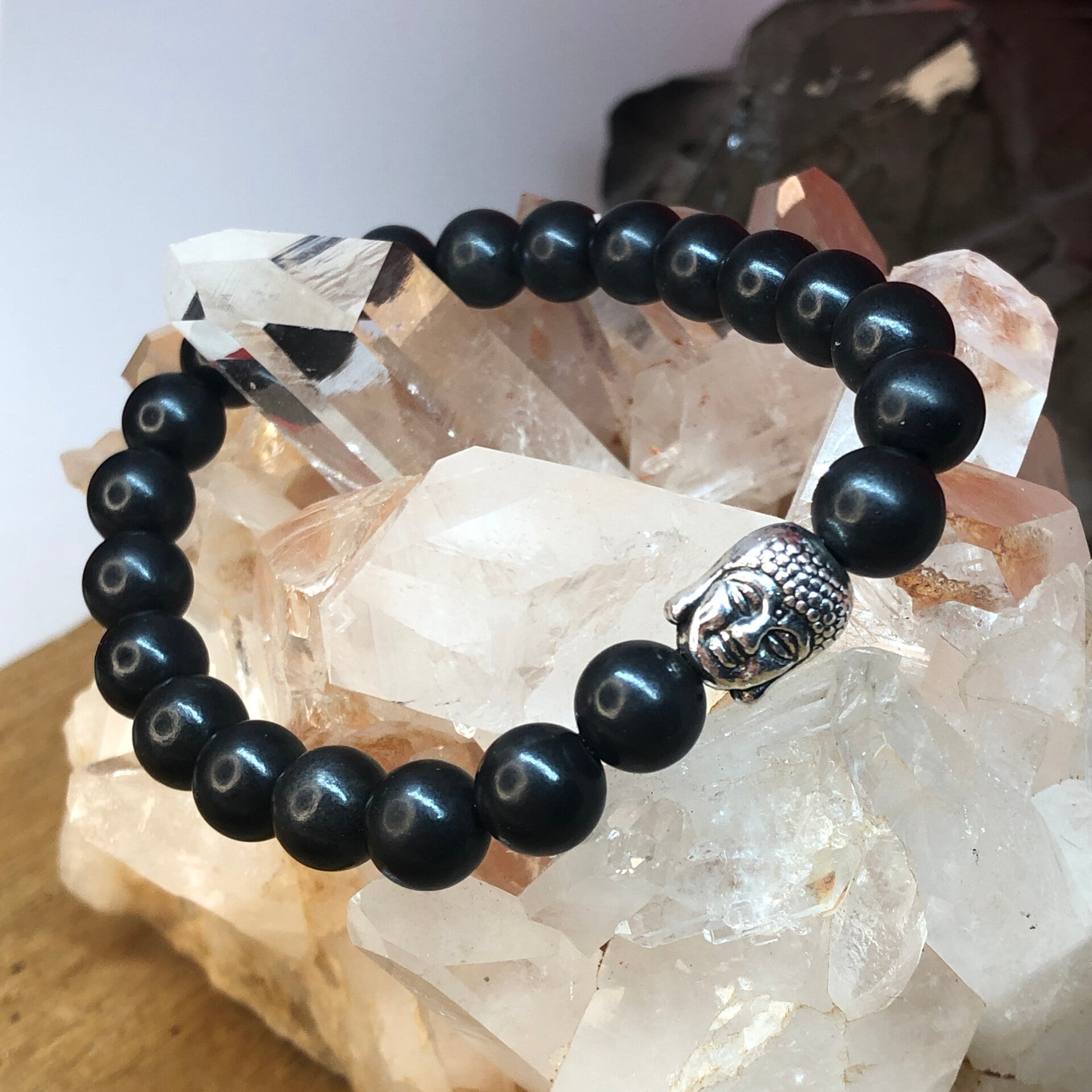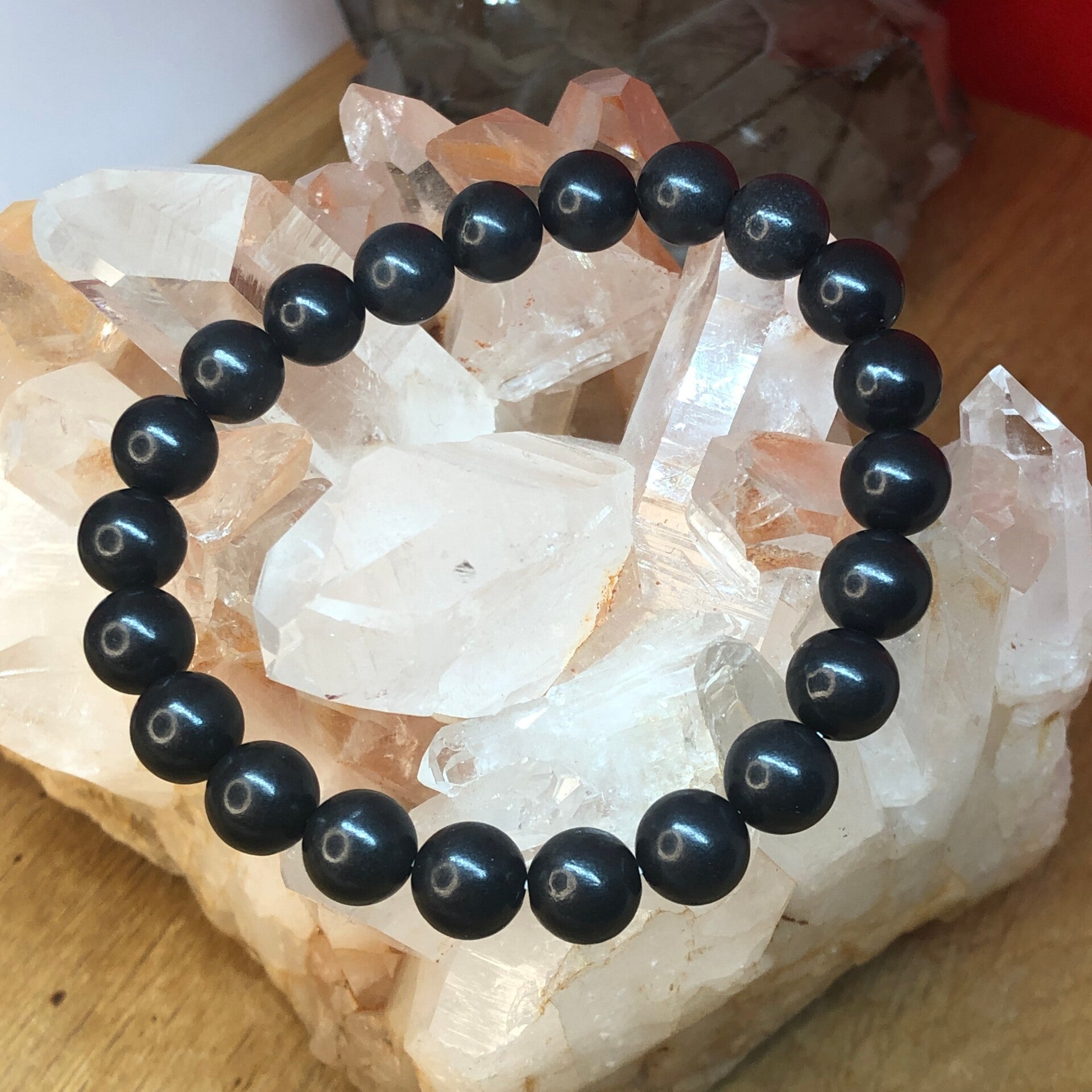 Bracelet en perles 8mm de Shungite monté sur fil élastique.