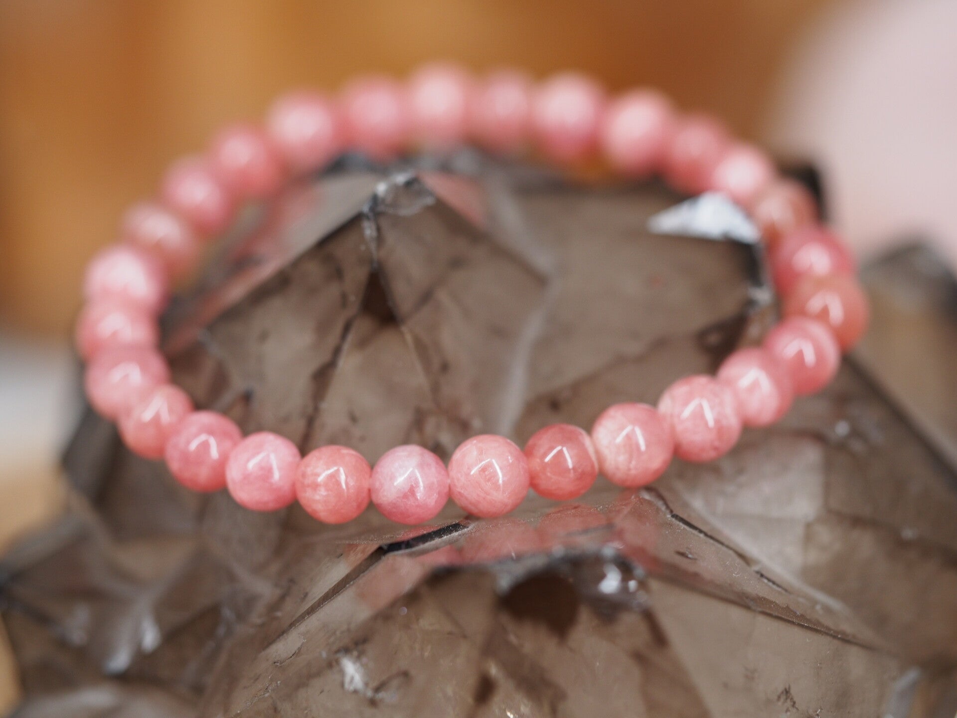 Bracelet en perles de Rhodochrosite 6mm monté sur fil élastique.
