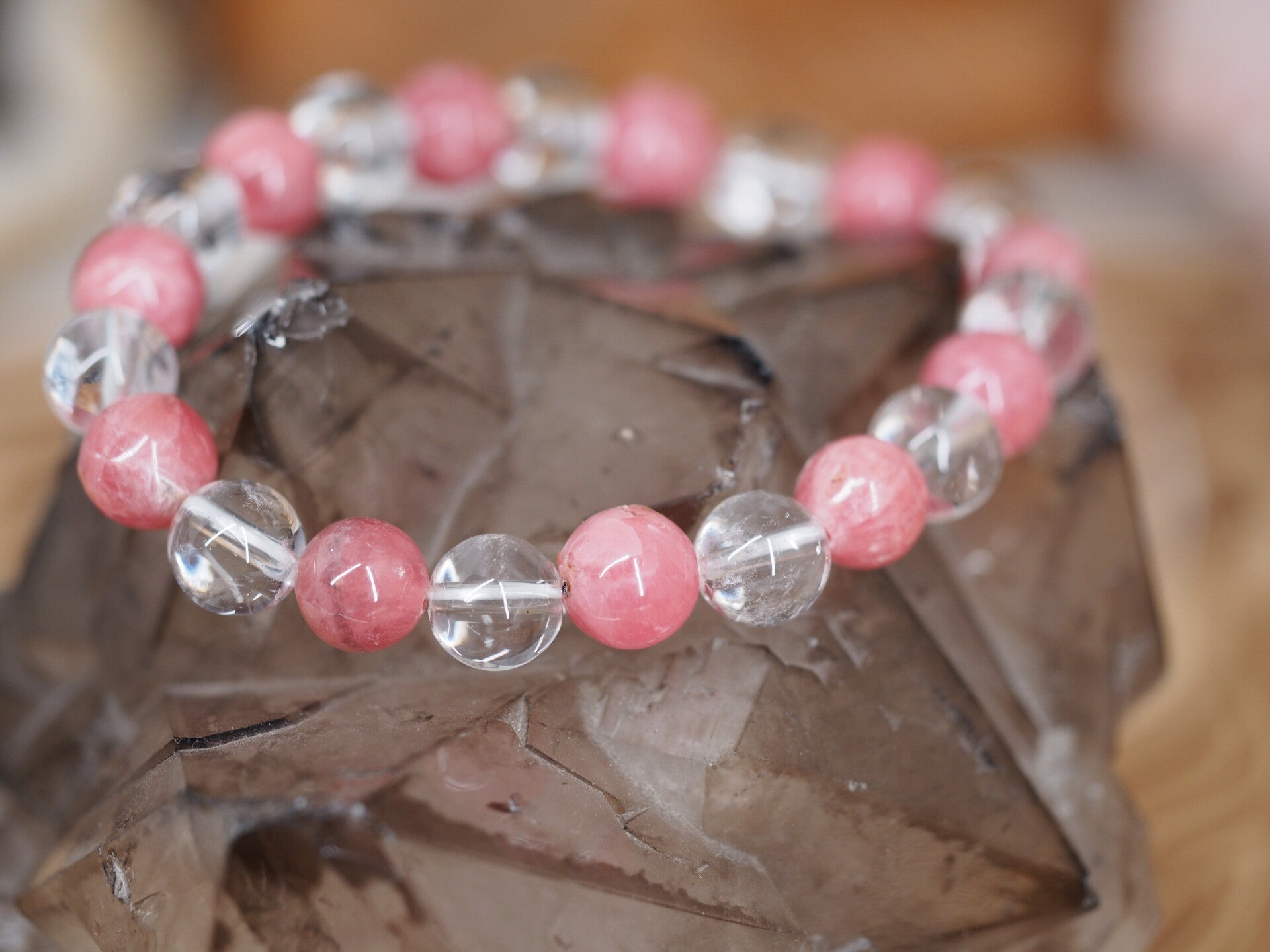 Bracelet en Rhodochrosite et Cristal de Roche 8mm