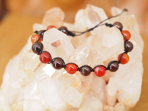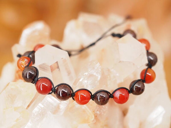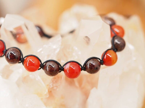 Bracelet tressé en perles de Cornaline et Grenat Rouge 8mm et fil de nylon.