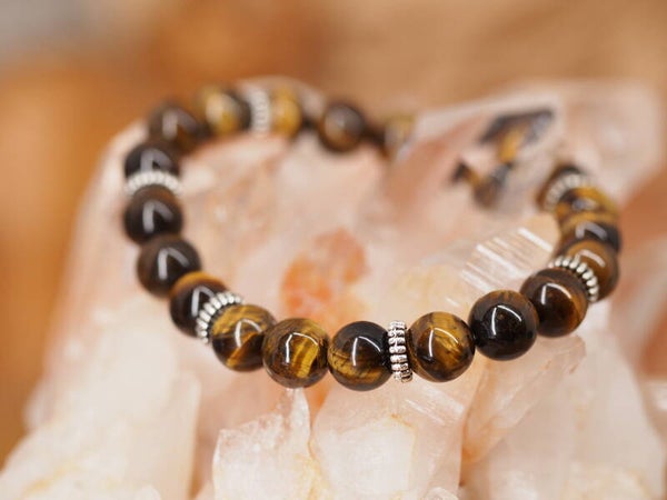 Bracelet en Oeil du Tigre en perles de 8mm monté sur fil élastique.