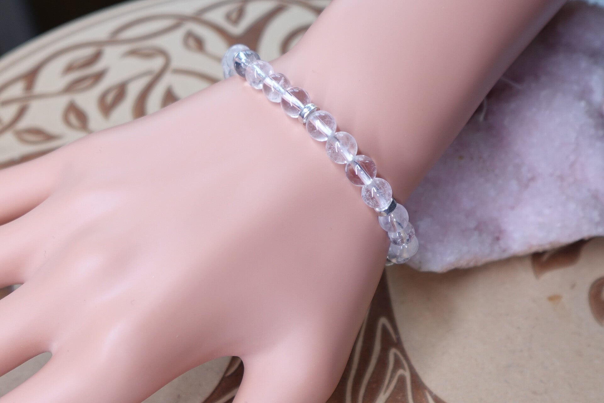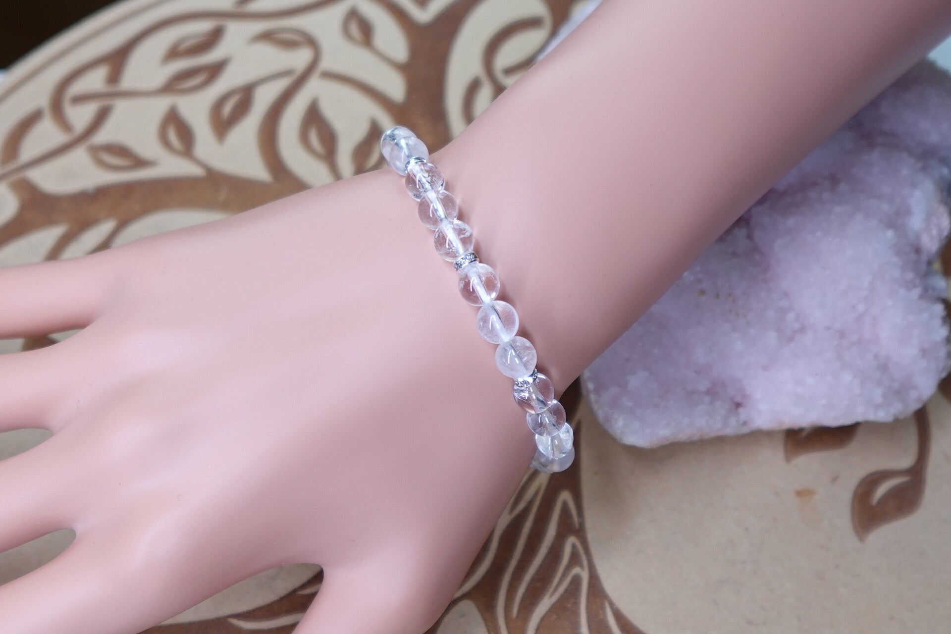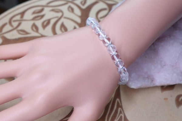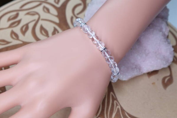 Bracelet en perles de Cristal de Roche 6mm monté sur fil élastique.