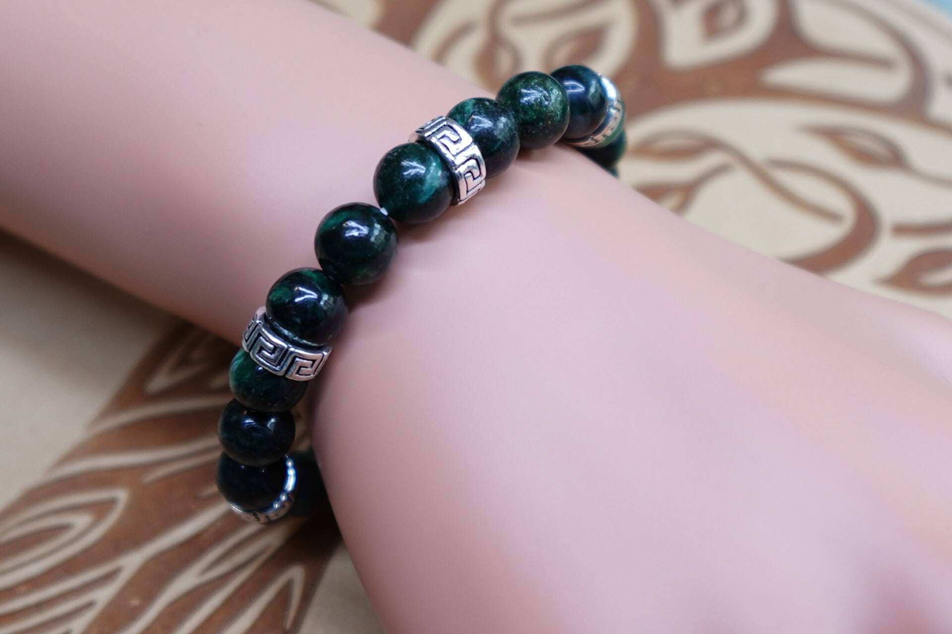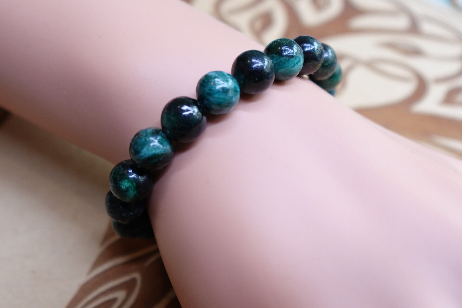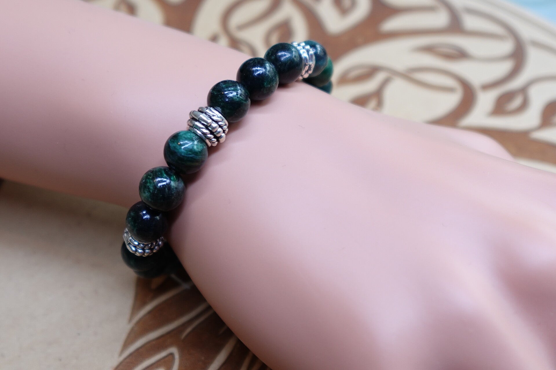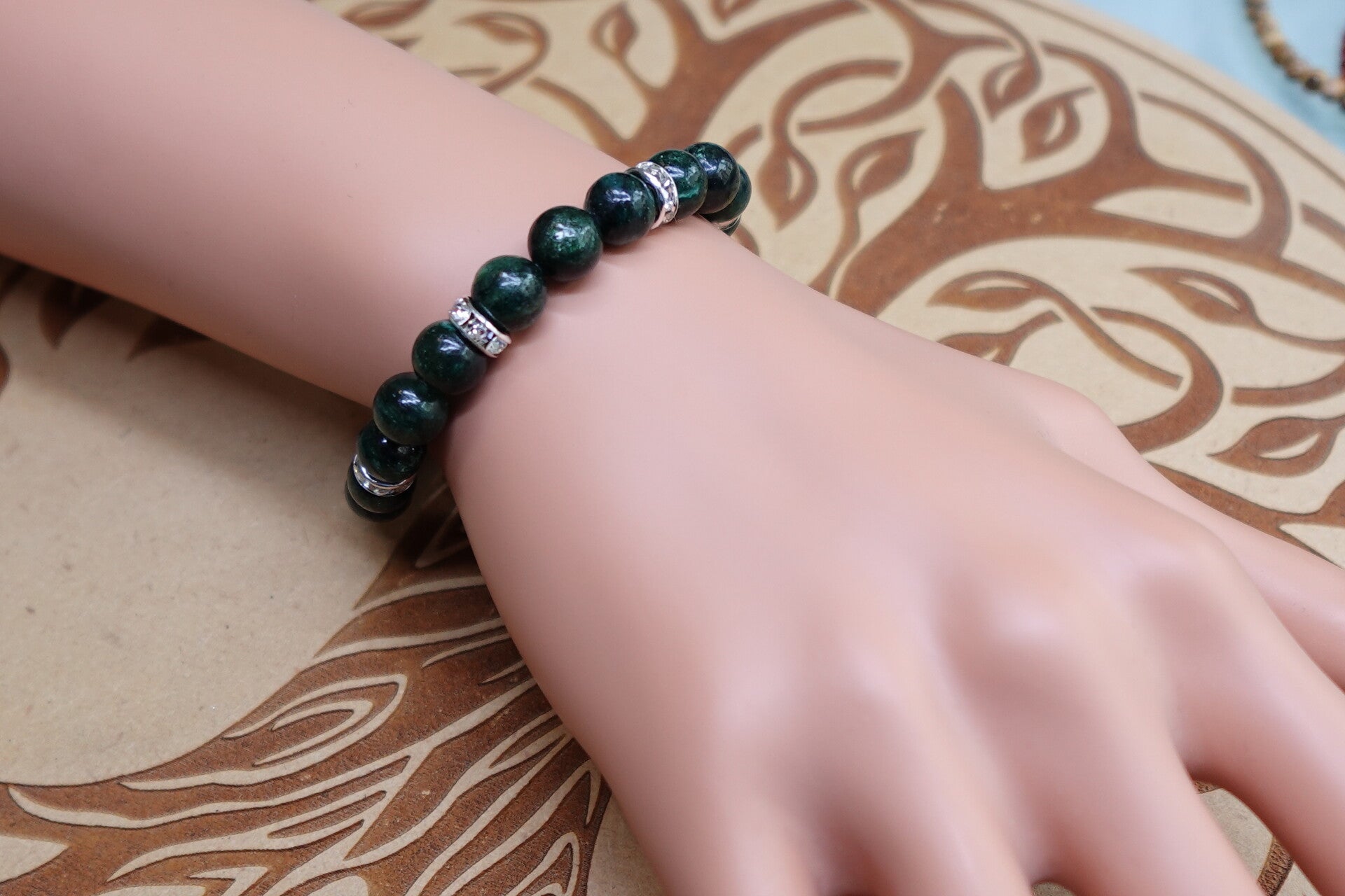 Bracelet en pierres fines d'Emeraude 8mm montées sur fil élastique.